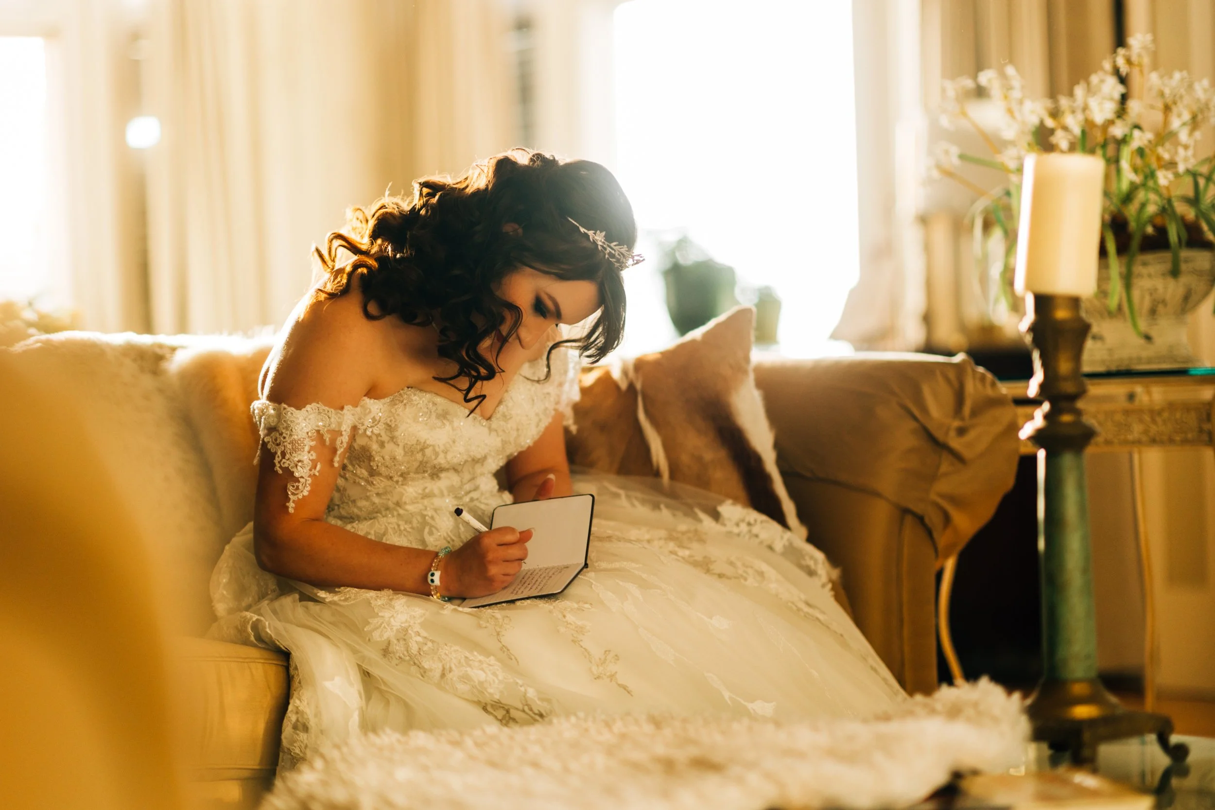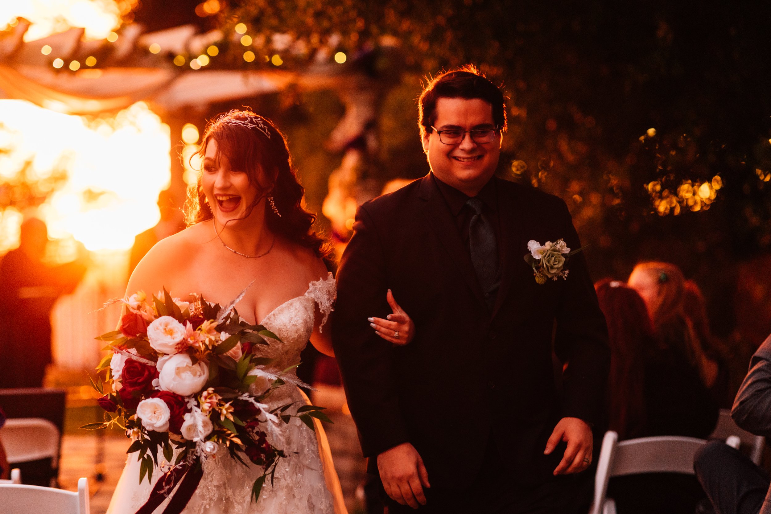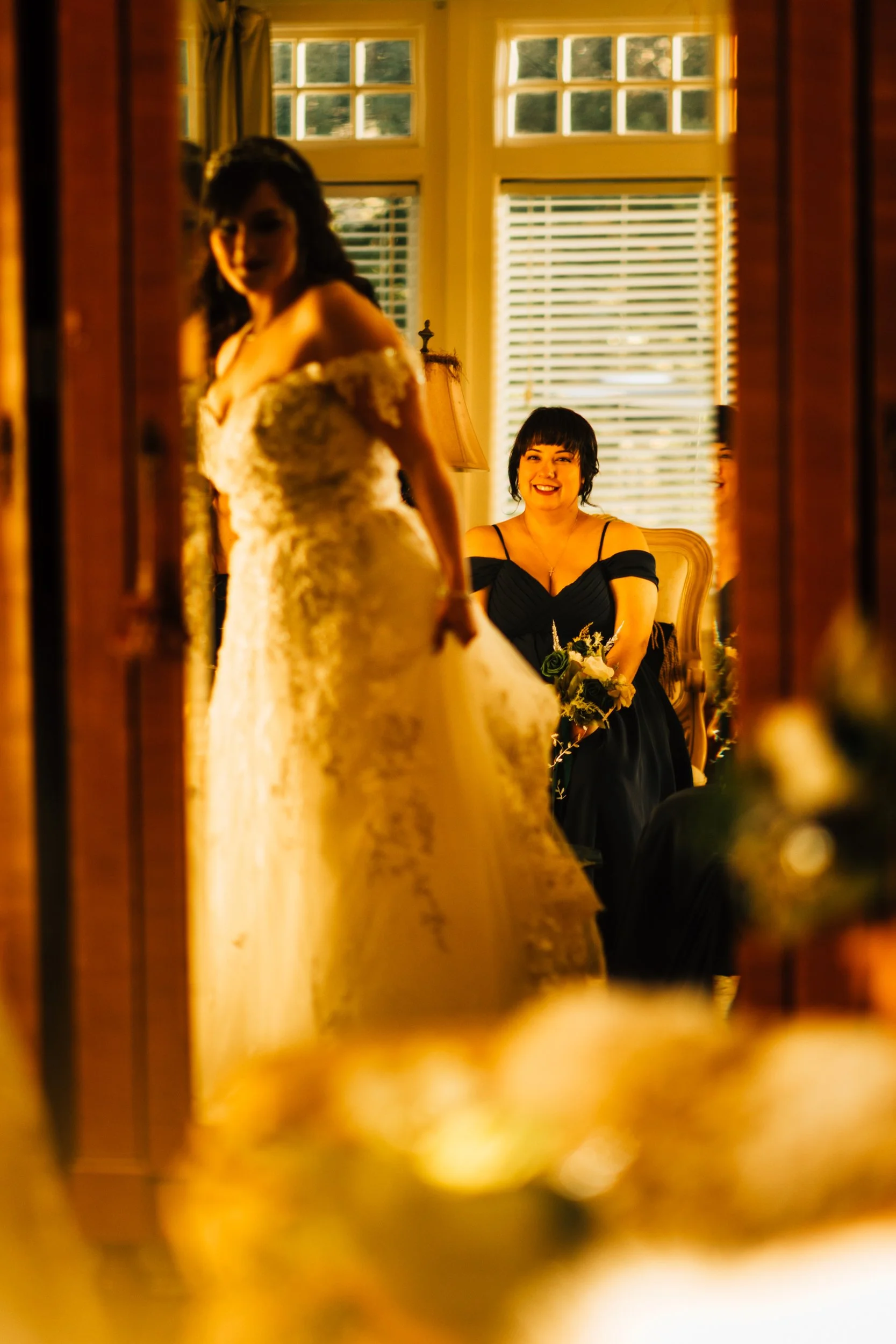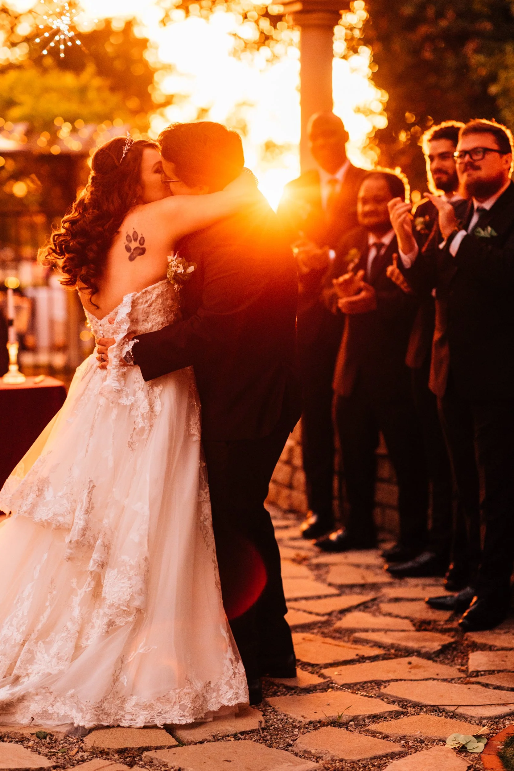 The sky threatened rain and the light was slipping away, but just as the ceremony began, the sun emerged — warm, golden, and perfect.